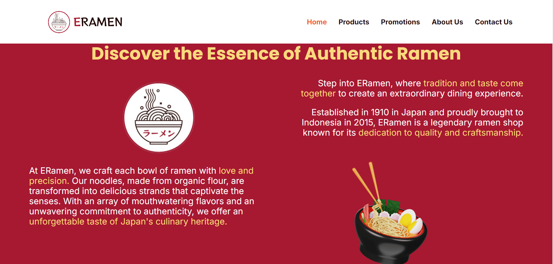 Human Computer Interaction course project assignment. A Ramen restaurant website mockup thats supposed to be responsive for both desktop and mobile screens. All logo and web design were made by me.